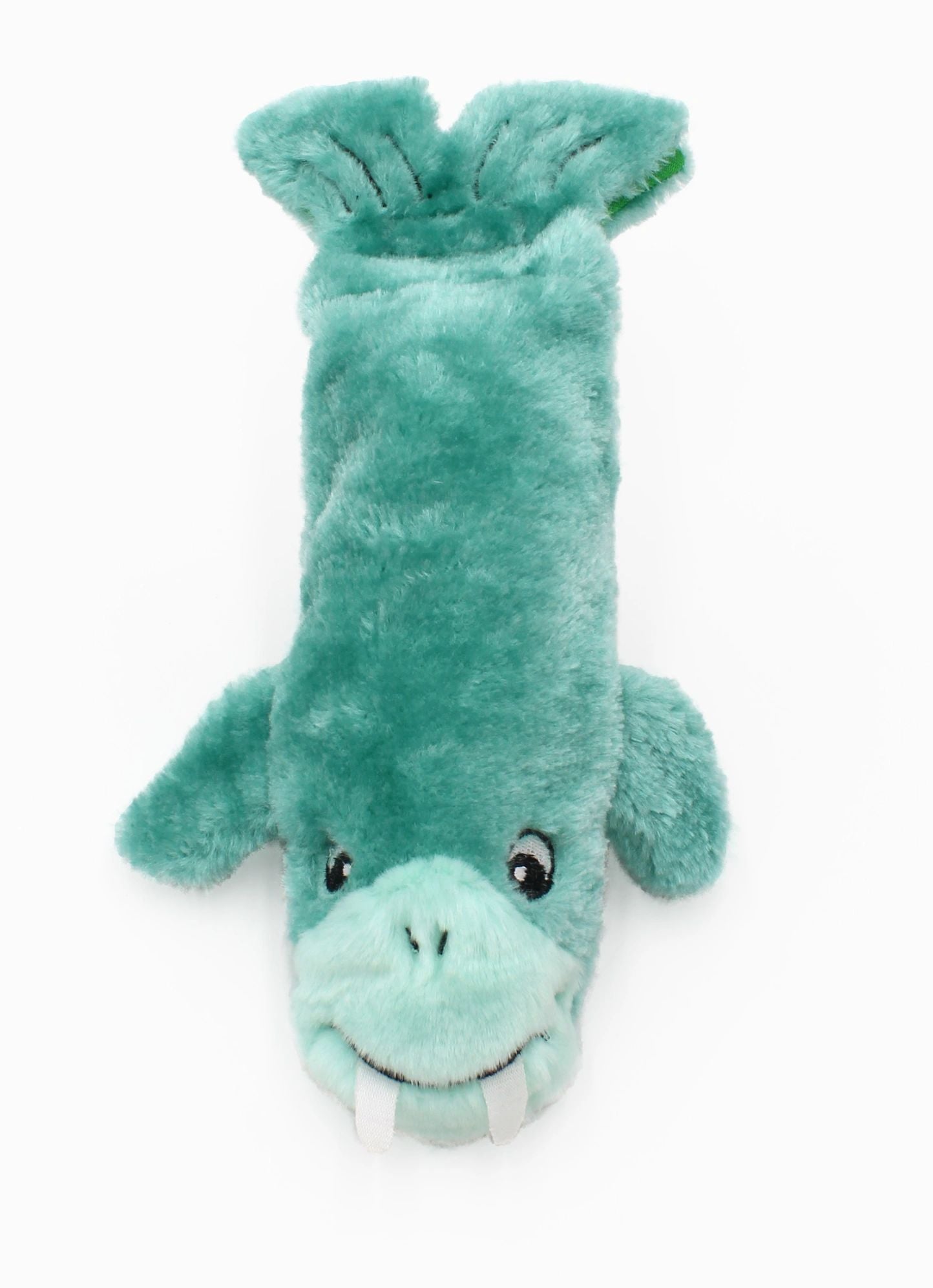 Chomp into fun with all-new Bottle Crusherz! They are just like our popular Happy Hour Crusherz, but wilder! The Bottle Crusherz Walrus is lined for durability and features a new and improved hook and loop closure, making it more difficult for your dog to remove the empty water bottle.